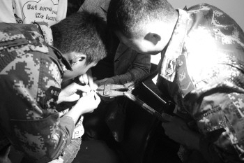 8日20时30分许,一位一脸焦急的家长带着一个小男孩,来到菏泽经济开发区消防大队岳程中队求助。原来男孩左手小拇指卡上一个铁环,由于血液不流畅,手指已出现红肿现象。消防官兵小心翼翼地将一长方形塑料细条嵌入铁环与手指之间的缝隙处,再用钳子和剪刀慢慢用力剪切,经过多次努力,终于将铁环取下来。