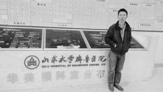 在齐鲁医院,王海林特意让记者拍照,证明自己在济南。 本报见习记者 王晓莹 摄
