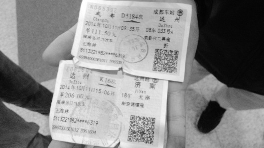 王海林随后掏出自己的火车票。他于11日上午9点多乘坐成都开往达州的火车,在达州转车后直奔济南,12日下午3点多才抵达。这一路是买了站票回来的,“不舍得花钱坐飞机,都是为了省下钱给女儿治病。”