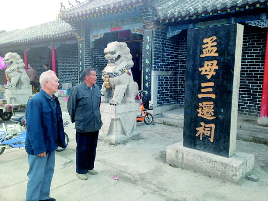 在户营附近的孟母三迁祠,两位孟氏后裔,76岁的孟祥坎和80岁的孟祥辉,说起家族往事,滔滔不绝。“我母亲从小就教育我,要懂得谦让。”孟祥辉说,在家族中,母亲一直承担着教育子女的重要任务。