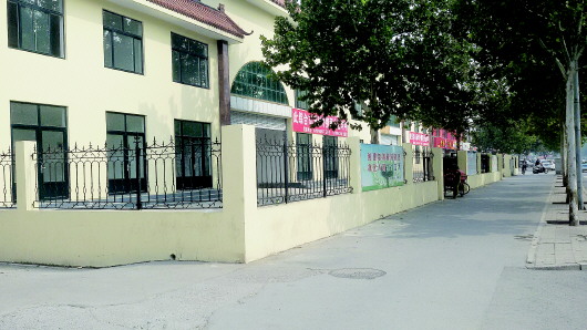 记者在现场看到,这一综合市场为两层楼房,楼前圈起的三面院墙基本占据了包括黄色条形盲道在内的人行道,约有30米长,外面就是非机动车道。综合市场内并无商家经营,楼上还贴着出租告示。