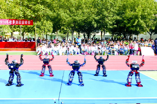 11日上午,济南市舜耕小学召开舜耕教育集团2014年秋季运动会,以“科技点燃梦想 运动相伴成长”为主题。集团成员校——馆驿街小学、舜华学校的全体师生首次参加。入场式上,同学们进行了科技创新作品、机器人表演、体育社团活动展演。 本报记者 李飞 摄