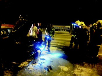 11日晚,天衢东路上一辆轿车在行驶过程中发生自燃,发动机仓烧毁,幸无人员伤亡。