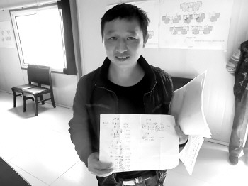 23号选房者崔国锋自制的备选攻略。 本报记者 陈晨 摄