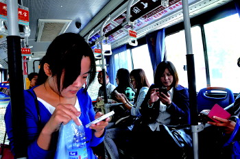 11日,记者来到7路公交车上,看到车厢内的LED屏显示“免费WIFI已覆盖”的提示,许多乘客看到提示后,都拿出手机开始上网,市民王女士原本打算在和平小区站下车,听说车上可以免费上网,竟忘记下车。“这多好啊,乘车再也不无聊了,咱的公交车越来越高大上了。”