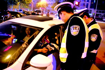 10日晚上8点30分,菏泽交警支队市区大队在曹州路牡丹路至解放大街一段开展查酒驾执法活动。本次执法活动共检查车辆1000余辆次,教育放行轻微违法驾驶员300余人,酒后驾驶3起,涉嫌无证3起,使用其他车辆年检年审标志1起。 本报见习记者 袁文卿 摄影报道
