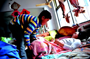 对王荣来说最难的就是给母亲翻身了,由于年龄太小体力差,每次翻身对他来说都像一场战役。