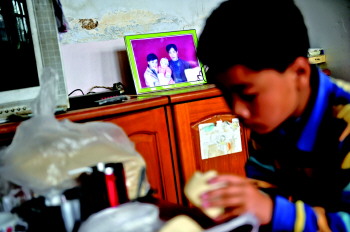 ◥王荣拿起语文课本抄起了课文,他希望爸爸能好起来,能回家,这样他就可以回学校上学了,他坚信上学改变命运。