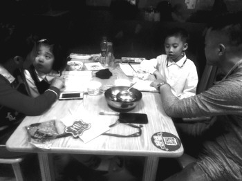 这温馨的一幕,不是在居民楼的某个房间,而是在日照市烟台路的一家快餐店里。孩子们的爸爸金先生经营这家店好几年了,生意很不错,回头客居多。他的孩子是龙凤胎,今年刚满6岁,在快餐店附近的一所小学读一年级。由于夫妻俩打理生意到晚上9点,只好利用客人不多的时候辅导孩子的功课。金先生很乐观:“带两个孩子虽然累一些,但看着他们一天天快乐地成长,付出再多也是值得的。” (王封)
