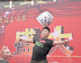 时间:2014年9月10日 自述:演员头顶大缸,来回转动。 点评:点个赞。