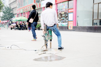 时间:2014年9月27日 自述:男子为了增加钻孔机的重力,直接坐在工作的机器上,增加钻孔机的向下钻孔的力量。 点评:很稳“腚”。