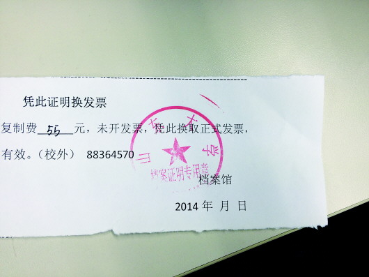 对于所收取的费用究竟是何种费用,各大高校的说法也各不一致。有的说是复制费,也有的说是查档费,而后面加收1—5元不等的收费均为盖章费。