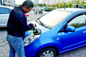 夏天的车子长时间在阳光下暴晒,车身和漆面都会受到伤害。另外,雨水中的酸性物质也会对车子漆面造成伤害,不及时处理,久而久之,爱车漆面会失去光泽。同时,空气中和路面上的灰尘、泥巴也容易和雨水一起粘在车身上,这就容易使车身变得肮脏。因此,进入秋季,保养的第一步就是对车子进行抛光打蜡,为爱车还原崭新、亮丽的外表。
