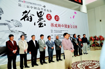 10月10日上午,翰墨花韵·孙成刚中国画交流展在菏泽市博物馆举办。中国美术家协会,山东省美术家协会,菏泽市人大、政协、文联,泰安市人大、政协、文联,日照市政协等部门领导出席开幕式并观看了作品展。开幕式上,孙成刚先生向李荣海艺术基金会捐赠花鸟画四尺精品《高瞻远瞩》图,著名书画家李荣海先生向孙成刚先生颁发捐赠证书。本次画展为期5天,共展出孙成刚作品60余幅。