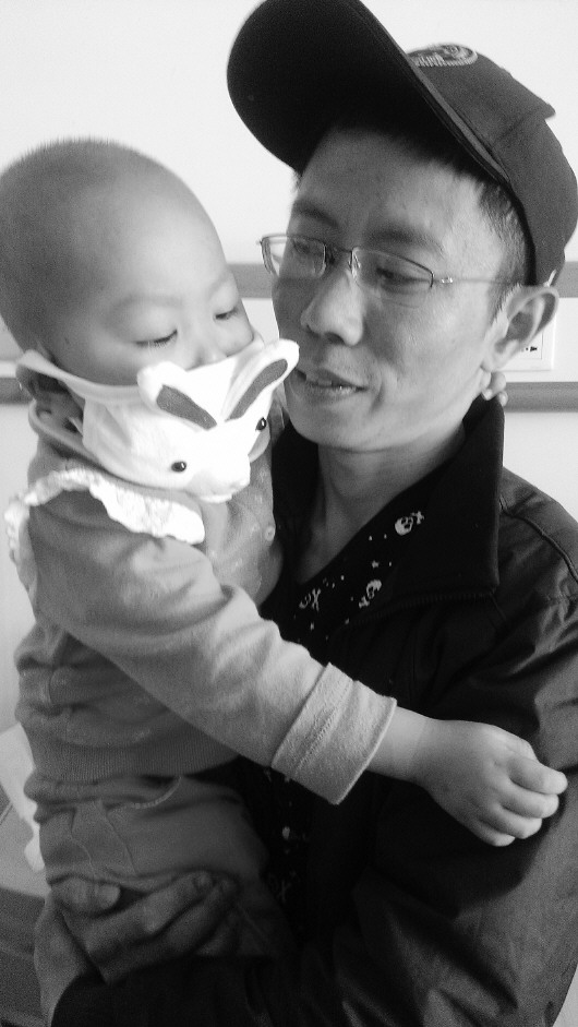 16日,在济南军区总医院,王海林抱着女儿。