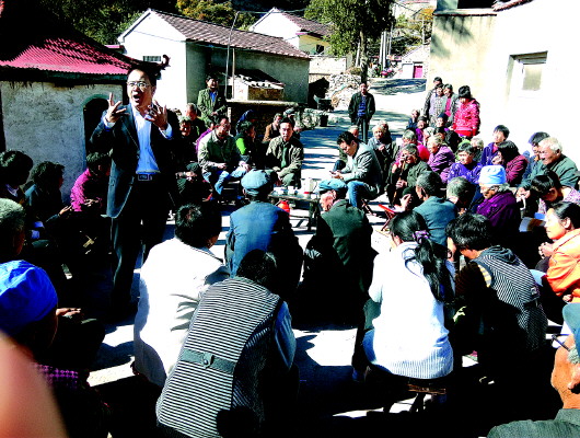 10月16日,章丘市官庄镇三角湾村近二百名村民齐聚村委会前的小广场,听城里老师讲孔子。来自山东财经大学经济学教授、论语研究传播专家王蔚自2003年传播论语,十余年曾为企业、机关以及学生等团体讲论语200余场。面对三角湾村这群特殊的学生,王蔚把精心准备的孝道文化,用最通俗的语言讲给老百姓。 本报记者 支倩倩 摄
