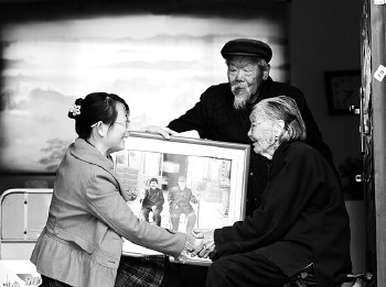 摄影爱好者王洪燕给这对百岁老人拍了一张合影照。