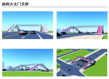 据了解,曲师大北门人行天桥跨度为34m,梁高为1.4米,天桥净空高度为6.365米,主桥宽度为5.4米(全宽)。梯道钢箱梁与主梁采用焊接连接,主梁段两侧分别设置双侧梯道,共4个梯道,梯道宽度为4.0米(全宽)。