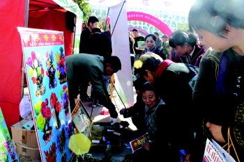 本报泰安10月16日讯(见习记者 杨思华 通讯员 付刚 徐慧) 16日,第十届中国泰山苗木花卉交易会在花样年华景区开幕,近千米展台挤满来客,小型观赏花木在交易会上很受欢迎,价格也比平时低5-20元不等。