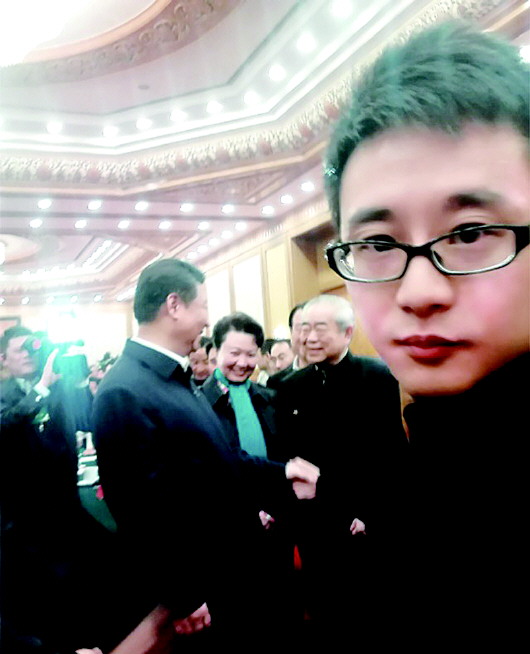 10月15日,周小平在微博发布了一张以习大大为背景的自拍:妈妈说自拍的时候最怕有人抢镜了。