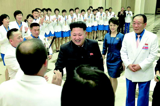 朝中社19日报道,金正恩与妻子李雪主会见了获得仁川亚运会和世界体操锦标赛金牌的朝鲜运动员,并与他们合影。这也是金正恩夫妇继9月3日共同出席牡丹峰乐团新作音乐会后,再次共同露面。