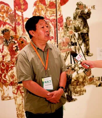 ▲中国文联副主席、中国美协主席、山东美术馆名誉馆长刘大为在“刘大为艺术奖”评选现场接受采访