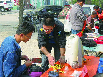 “供暖管道堵塞了,请师傅给看看。”19日上午,美菱太阳能刘俊全师傅团队带着齐全的维修工具和大量零部件赶到活动现场。由于供暖季到来,很多居民请他们维修供暖管道。