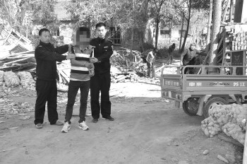 办案民警押解犯罪嫌疑人进行现场指认。通讯员 张琰 摄