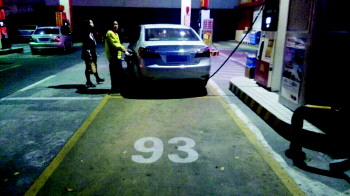 18日晚上6点10分左右,山东路金盾加油站共6组加油机,全部正常开放。加油区的5名加油人员都以同一种标准姿势,站在加油机的相同位置等候车辆。体验车辆刚行驶到加油站入口处,就有加油人员举手示意,出来引导车辆停放到指定的位置。