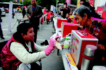 18日,在义演现场,得到过张广安救助的许多受助者来到活动现场,为张广安带来祝福和捐助。其中,刘梦雨坐了一个小时电动轮椅,代表“生命之歌网站”捐出1000元,李文硕的妈妈在现场收到网友捐赠的1000元,也放进了捐款箱。大家都说,受过张会长的帮助,现在他有了难处,一定要尽自己的一份心。