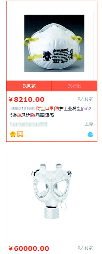 记者在淘宝网上搜索“防霾口罩”,共搜到3.89万件产品,价格从几元到近万元不等。