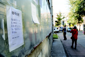 很多小区的宣传栏贴有租房信息。 本报记者 姜文洁 摄