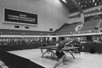 17日,山东省第四届全民健身运动会乒乓球比赛暨山东省第六届千乡乒乓球总决赛在滕州开幕。此次比赛共有来自全省17地市和行业体协的20个代表队,150余人来滕参赛,为期3天,并于10月19日下午举行了闭幕颁奖仪式。 本报记者 张冬梅 本报通讯员 杨静 摄影报道