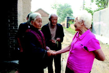 今年8月,张新月老人的一个亲戚,无意中看到了《齐鲁晚报》连载的《苦菜花,甘蔗芽》中张新月的故事,就兴奋地告诉了张新月。张新月听了亲戚念的故事后,心情特别激动,立即发动家人与“妹妹”姜淑梅联系。不久通过“博客”,联系到了姜淑梅的女儿张爱玲,双方即刻激动地通了电话。10月1日,年已92岁高龄的张新月老人在女儿和女婿的陪同下,高兴地从嘉祥县赶来,60年不曾见面的姜淑梅和妹妹姜秀英终于和张新月“哥哥”见面了。 (刘谓磊)