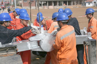 110千伏温庄变电站10千伏配出线路工程是枣庄电网秋检重点项目之一,近日,枣庄供电公司滕州客户服务分中心,30余名员工在东郭镇温庄村南组立钢管塔,加紧进行110千伏温庄变电站配出线路架设施工。 本报记者 张冬梅 本报通讯员 班开超 王葳 摄影报道