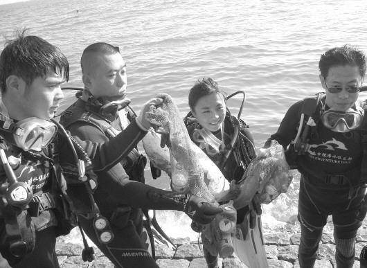 为捡垃圾,考取潜水证 蛙人志愿者最大的50多岁,最小的只有10岁。