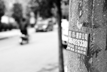 很多小区都张贴着这样的搬家小广告。本报记者 李岩松 摄