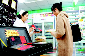 不少市民赶在阿胶涨价前来药店购买相关产品。 本报记者 姜文洁 摄