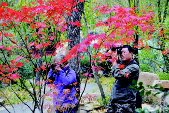 21日,本报拍客团被红叶谷美丽的红叶所吸引。 本报记者 王鸿哲 摄