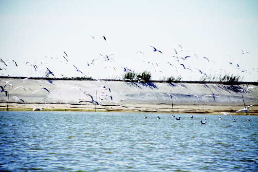 “96只美丽的白天鹅栖息在黄河岛景区湿地的水面上,太漂亮了!”不少游客惊叹地说,这还是第一次,近距离地见到百只天鹅齐飞翔,场面太壮观了。在深秋季节,黄河岛景区大片的芦苇、“红地毯”点缀于岛四周,色彩层峦迭加,俨如一幅淡淡的国画。景区独特、和谐的自然环境也成为北方鸟类越冬栖息的首选,其中有白天鹅、白头鹤、灰鹤等珍贵野生鸟类多达40余种。鸟类栖戏于岛上,游客漫步观海栈道,一幅人与自然和谐相处的美景。虽说是旅游淡季,黄河岛依旧迎来了各方客人。