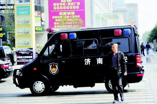 23日,巡逻车在济南泉城路来回巡逻。本报记者 王媛 摄
