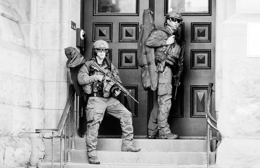 当地电视画面显示,议会大楼内的过道枪声大作,保安人员举枪向过道一头追去。加拿大警察特种部队进入议会大楼展开搜查。