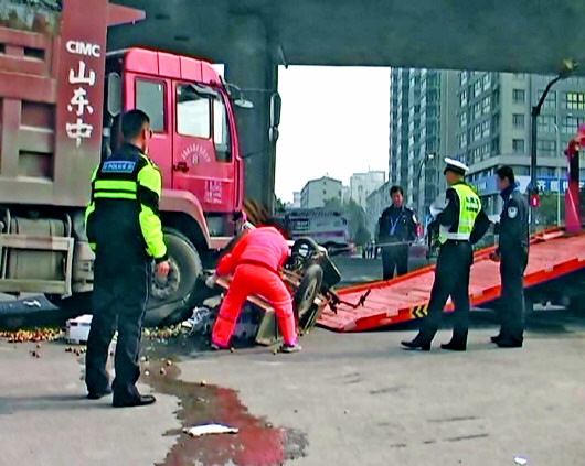 “我当时正在打扫卫生,忽然听到紧急刹车的声音,才发现路口出车祸了。”环卫工韩先生告诉记者,“开三轮车的人是个40来岁的女人,应该是卖水果的,车后斗里装着几箱冬枣。当时三轮车翻倒在地上,冬枣也撒了一地,车主就躺在大卡车前轮与后轮中间,整个人被碾过去了。”