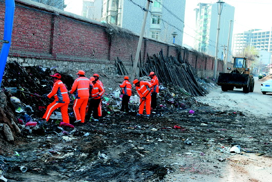清理背街小巷垃圾。