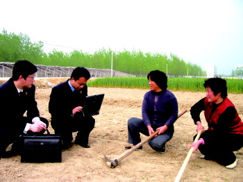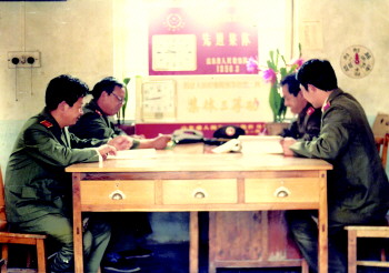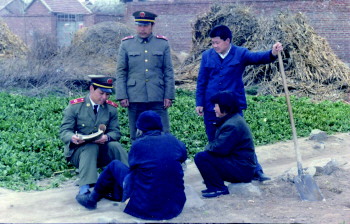 ◥1994年检察干警到乡村调查取证时需要用笔记录。