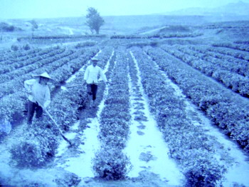 上世纪70年代,茶农在茶园内浇越冬水。