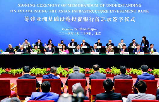 孟加拉国、文莱、柬埔寨、中国、印度、哈萨克斯坦、科威特、老挝、马来西亚、蒙古国、缅甸、尼泊尔、阿曼、巴基斯坦、菲律宾、卡塔尔、新加坡、斯里兰卡、泰国、乌兹别克斯坦和越南21个首批意向创始成员国的财长和授权代表24日在中国北京签署备忘录,共同决定成立亚洲基础设施投资银行(以下简称亚投行),总部将设在北京,标志着这一中国倡议设立的亚洲区域新多边开发机构的筹建工作将进入新阶段。