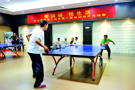 12日,名士豪庭第二社区居委会举行了一场乒乓球比赛,社区乒乓球爱好者进行了切磋。 (肖龙凤 高燕).