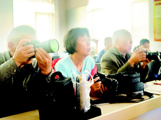 18日上午,齐鲁晚报第五期周末“拍课堂”在名士豪庭第二社区居委会举行。喜爱摄影的社区居民拿着自己的相机,跟着本报摄影记者上了一堂生动的摄影知识与实践课。