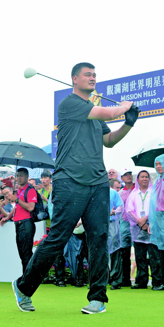 持超长1号木的姚明自23日早上就开始刻苦练球,他的配对球星是现世界排名第四的挪威高尔夫女将苏珊·佩特森。连续两届参赛的姚明球技似乎见长,认真观摩保尔特等名将的动作,同时也得到这位英格兰名将的全方位指导。11号洞,姚明开球打进右侧树林,“小巨人”被自己糟糕的一杆给逗笑了,心态相当放松。最终姚明凭借搭档佩特森的两只小鸟,以-2杆位于第11位。